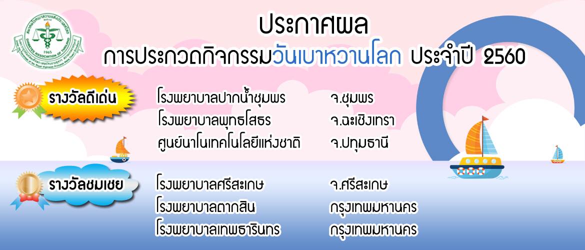 ประกาศผลการประกวดสถาบันที่ได้รับทุนโครงการรณรงค์วันเบาหวานโลก ๒๕๖๐ ภายใต้หัวข้อ “นานามิติของผู้หญิงกับเบาหวาน”