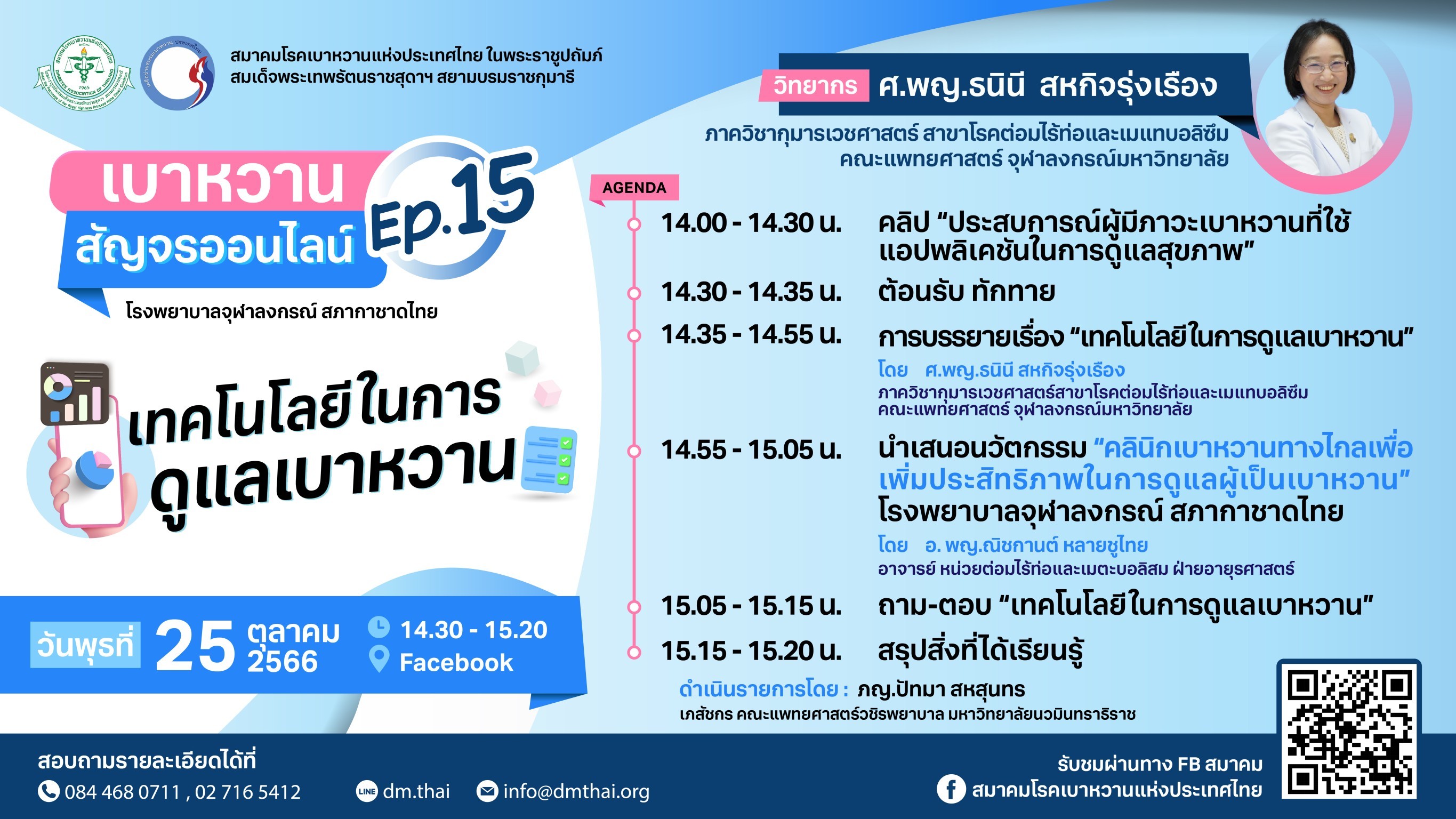ขอเชิญร่วมรับฟังเสวนา เบาหวานสัญจรออนไลน์ Ep.15 หัวข้อ “เทคโนโลยีในการดูแลเบาหวาน"