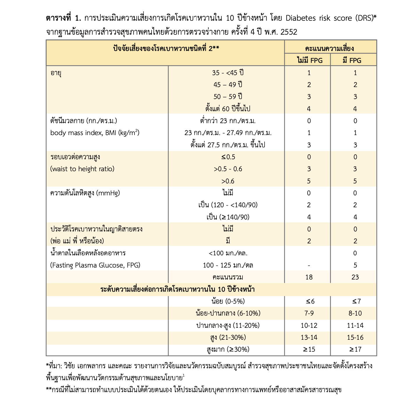 เเบบประเมินความเสี่ยงเบาหวาน สำหรับประชากรผู้ใหญ่ทั่วไปและผู้มีความเสี่ยงต่อการเกิดโรคเบาหวาน (ไม่รวมหญิงตั้งครร...