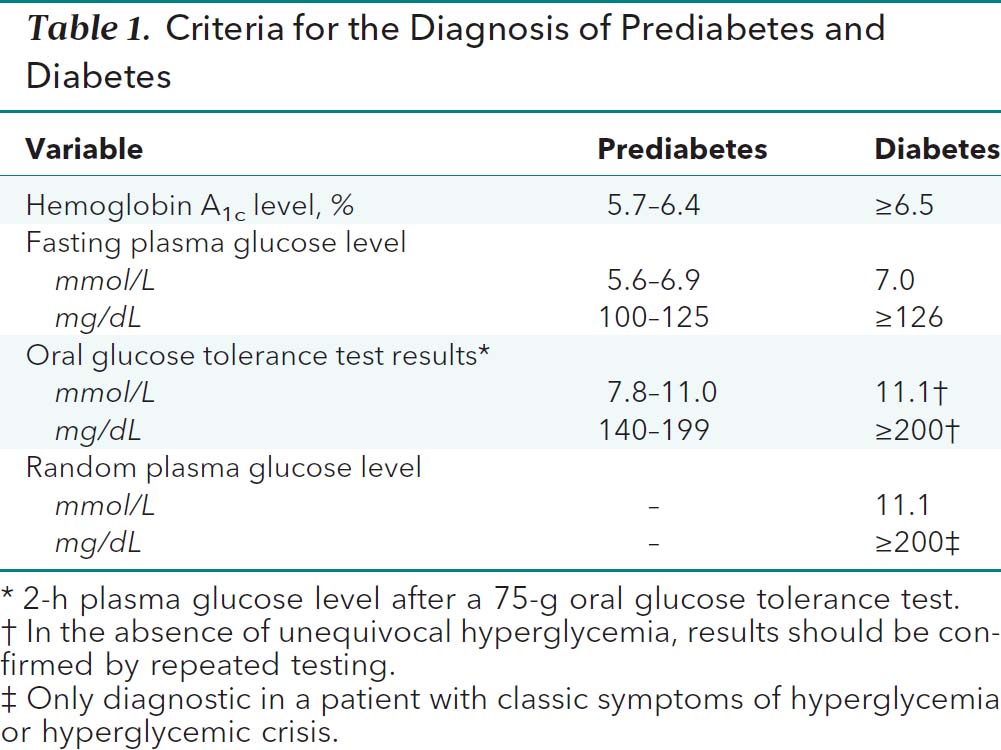 การวินิจฉัยเบาหวานและกลุ่มเสี่ยง การวินิจฉัยเบาหวาน  (ดังตาราง) - น้ำตาลหลังอดอาหารข้ามคืน (มากกว่า 8 ชั่วโมง) มากกว่า �...