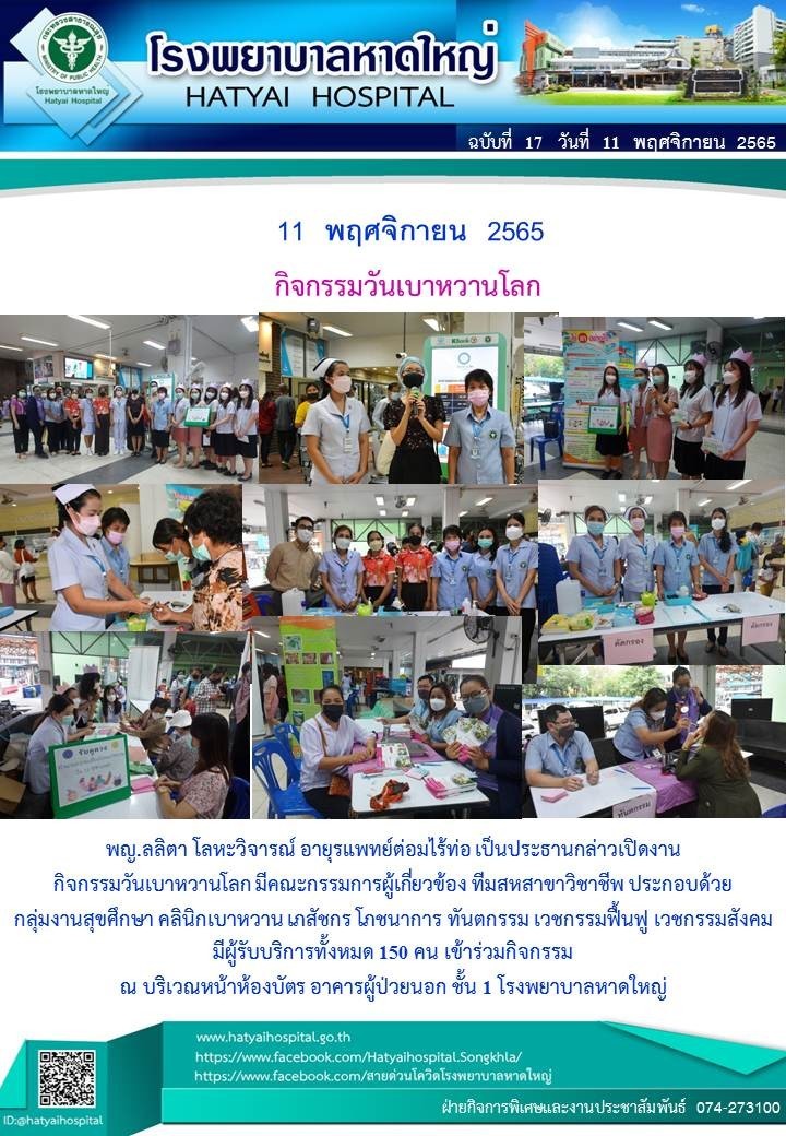 กิจกรรมวันเบาหวานโลก โรงพยาบาลหาดใหญ่ ...