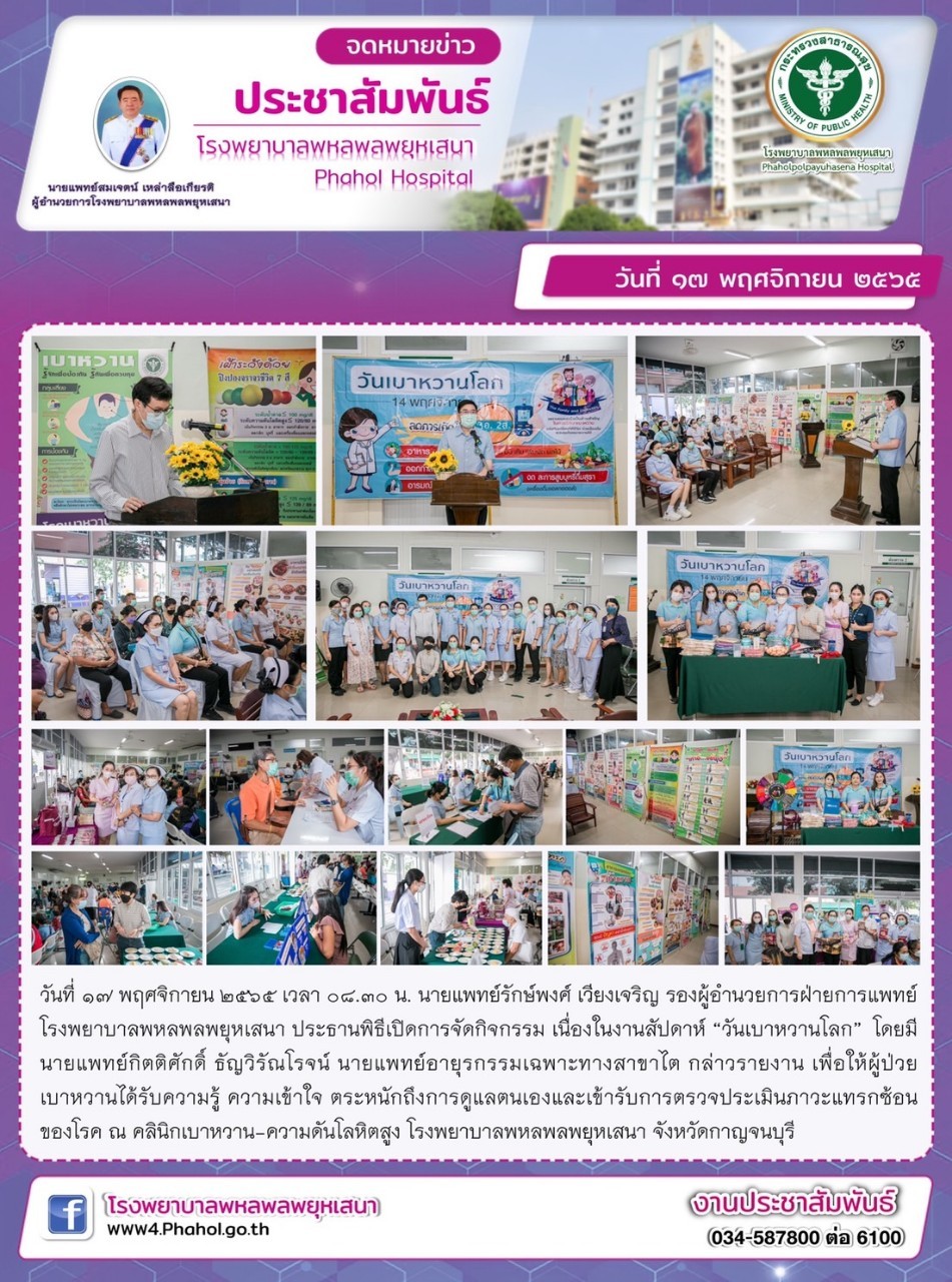 กิจกรรมวันเบาหวานโลก โรงพยาบาลพหลพลพยุหาเสนา ...