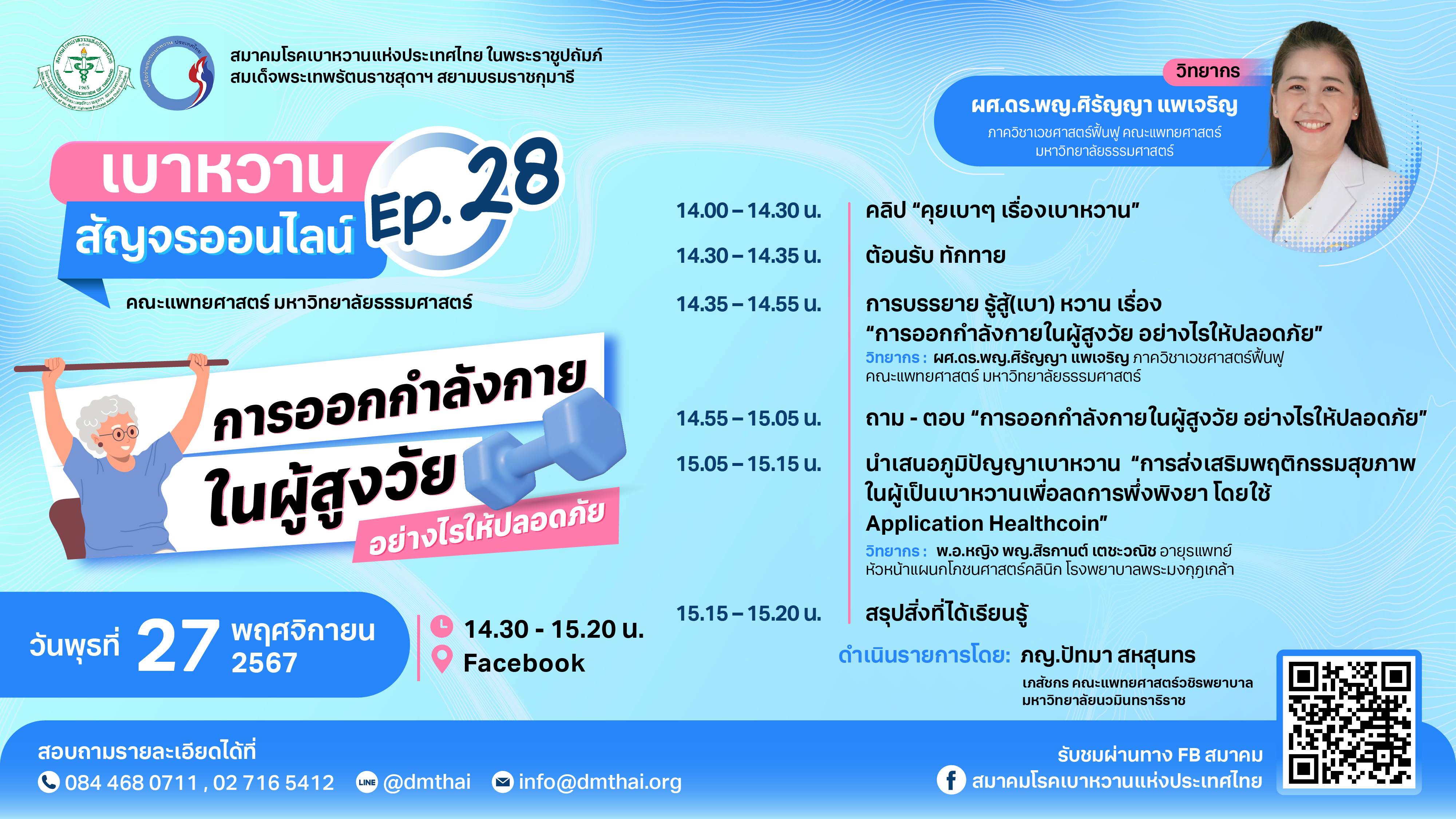 เบาหวานสัญจรออนไลน์ Ep.28 หัวข้อ "การออกกำลังกายในผู้สูงวัย อย่างไรให้ปลอดภัย"