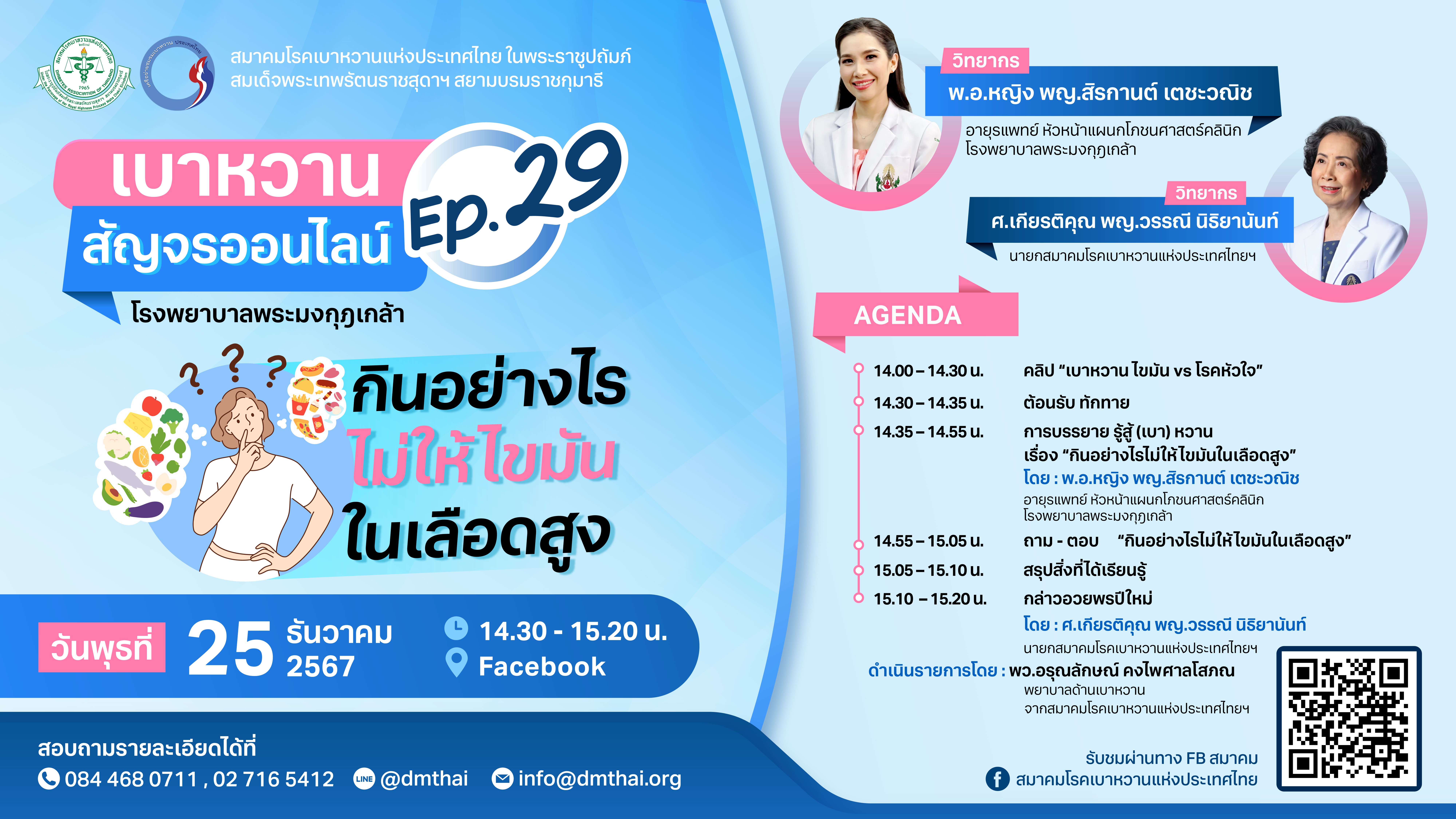 เบาหวานสัญจรออนไลน์ Ep.29 หัวข้อ "กินอย่างไรไม่ให้ไขมันในเลือดสูง"