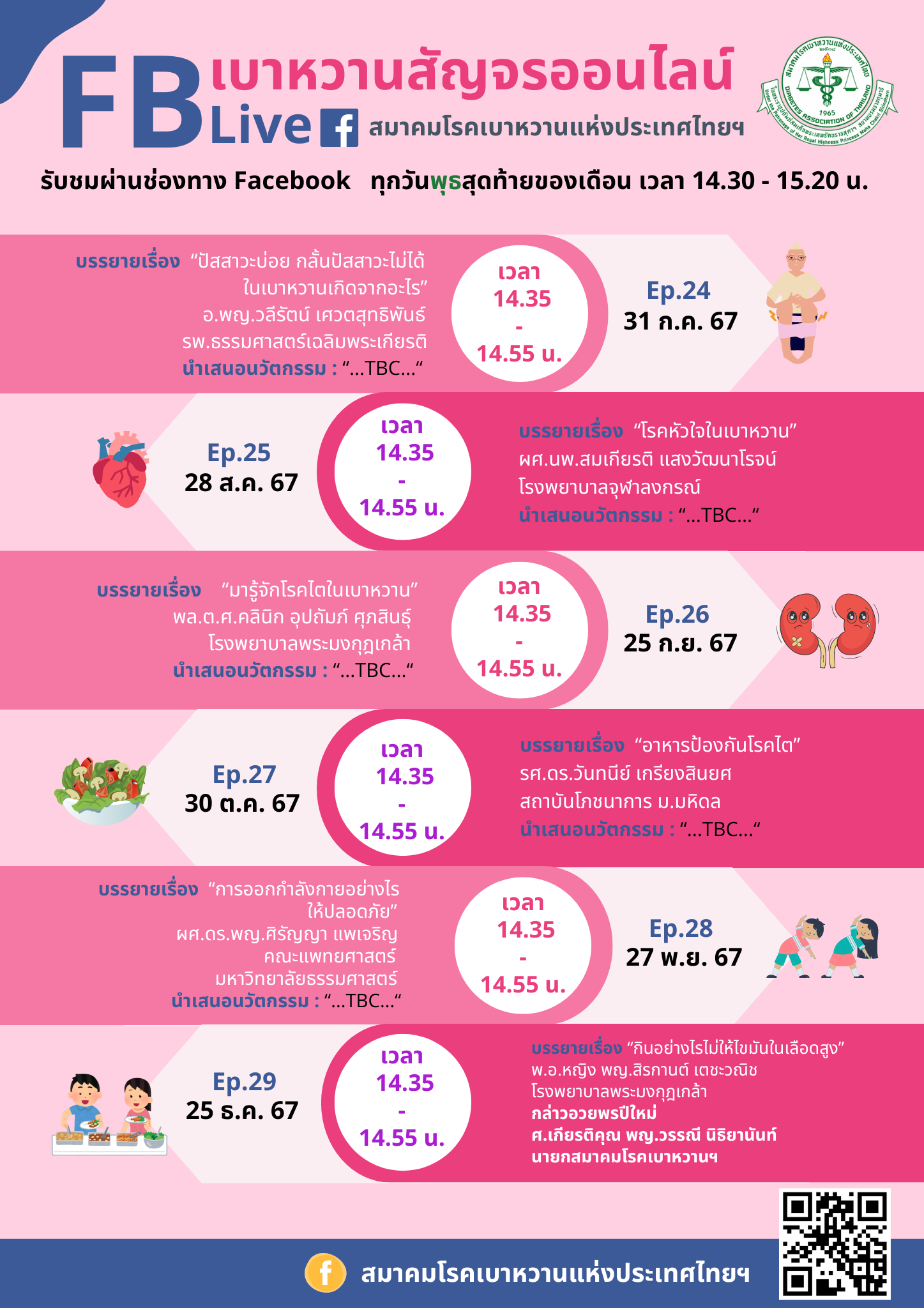 หัวข้อการบรรยาย เบาหวานสัญจรออนไลน์ (FB Live) ทุกวันพุธสุดท้ายของเดือน เวลา 14.30 - 15.20 น. รับชมผ่านช่องทาง Facebook : สมาคมโรคเบาหวานแ�...