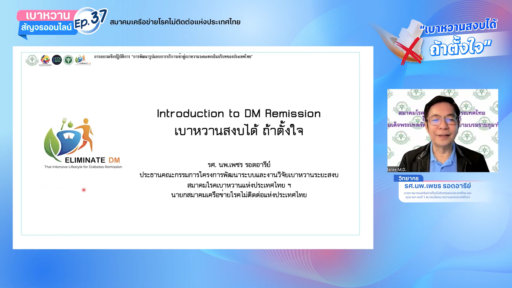 เบาหวานสงบได้ ถ้าตั้งใจ คลิปจากเบาหวานสัญจรออนไลน์ EP.37 โดย รศ.นพ.เพชร รอดอารีย์ คลิกที่ภาพเพื่อดูการบรรยาย...