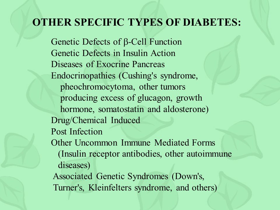 เบาหวานอื่นๆ เบาหวาน แบ่งเป็น 4 ชนิด 1.เบาหวานชนิดที่ 1 มักพบในเด็ก เป็นเบาหวานที่ใช้ยาฉีดอินซูลินในการรักษา 2.เบาหวานช...